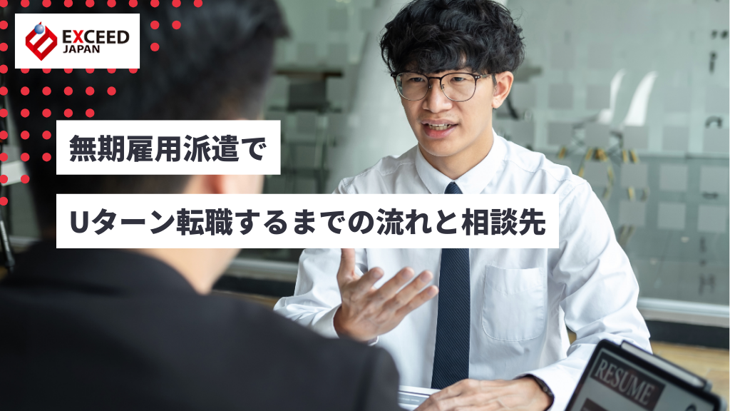 地元での仕事選びに不安がある方は、無期雇用派遣に強いエクシードジャパンに相談してみてください。配属提案から就業後のフォローまで支援が受けられ、安心してUターン転職を進められます。